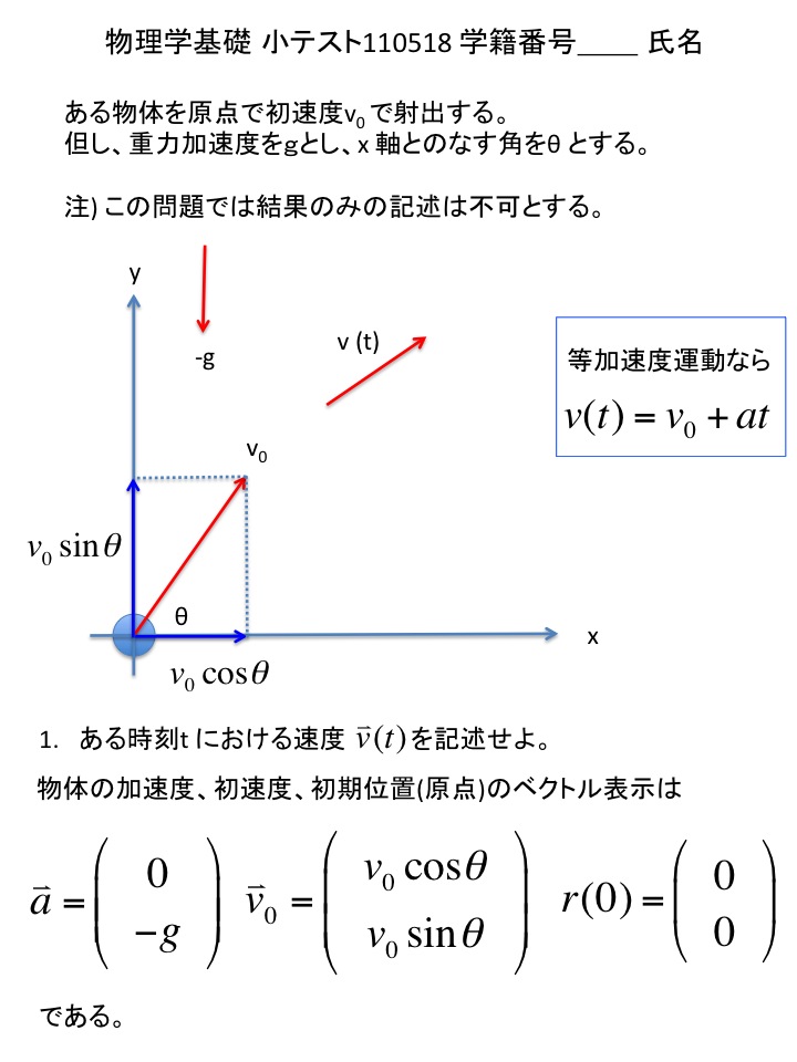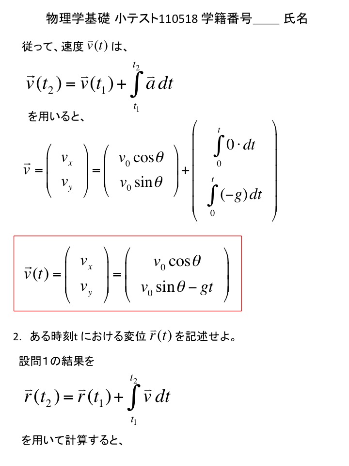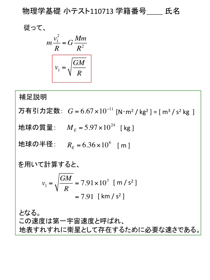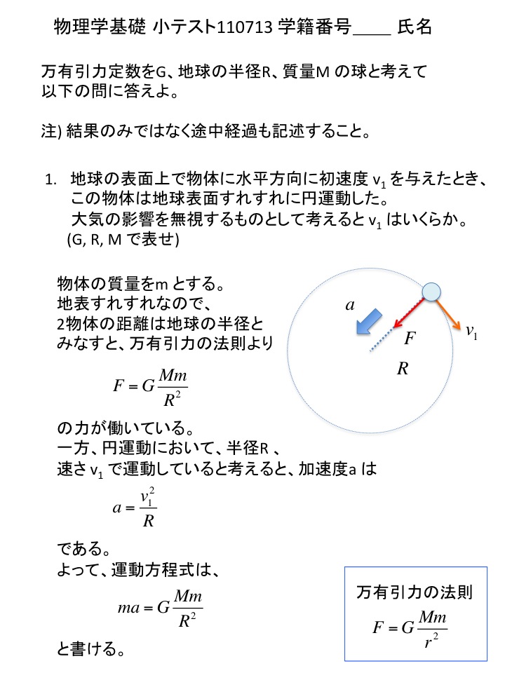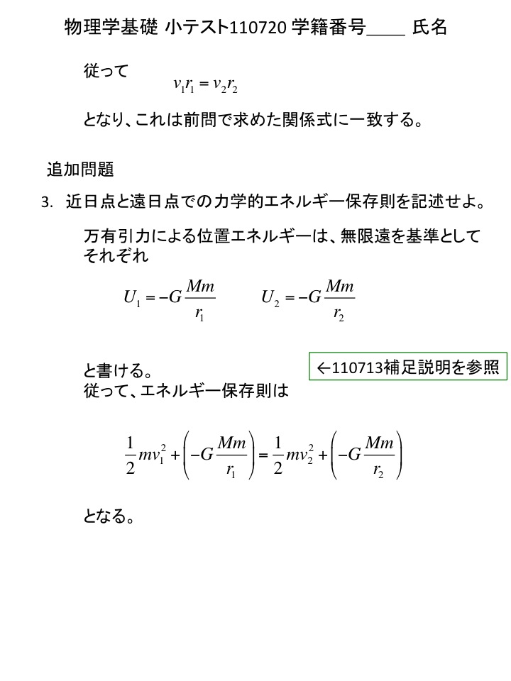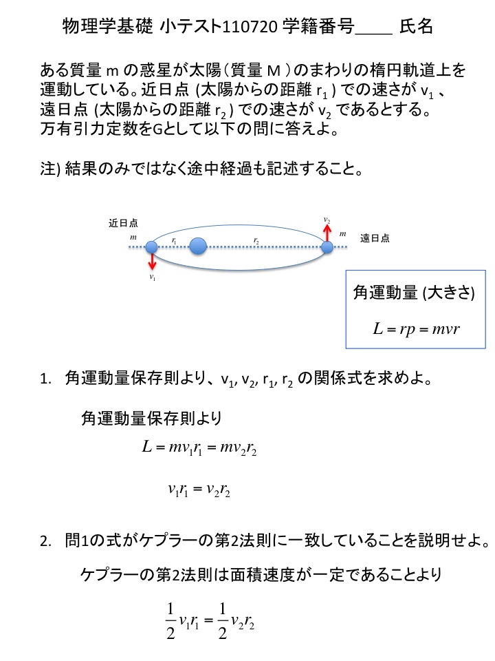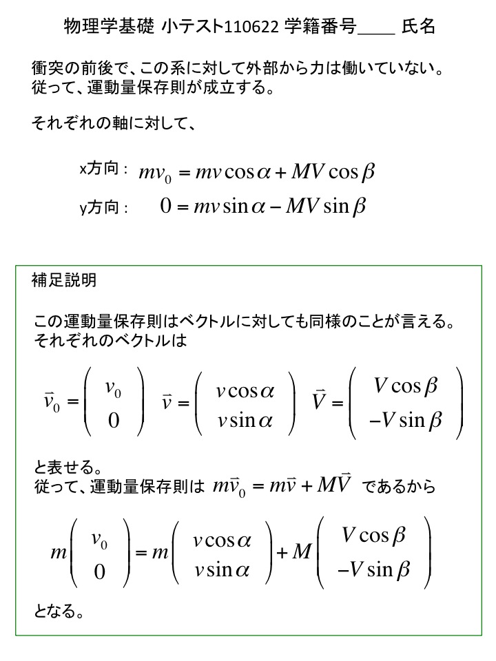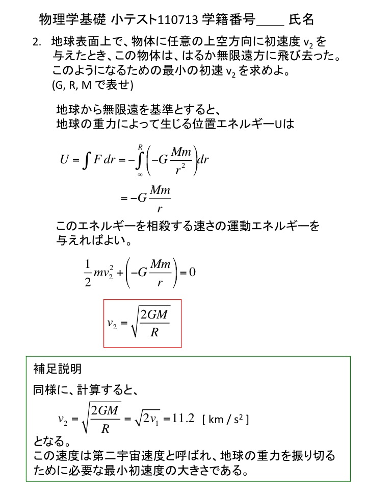 2011年度 物理学基礎 小テスト解答例(仮)