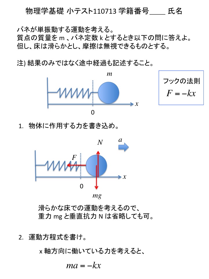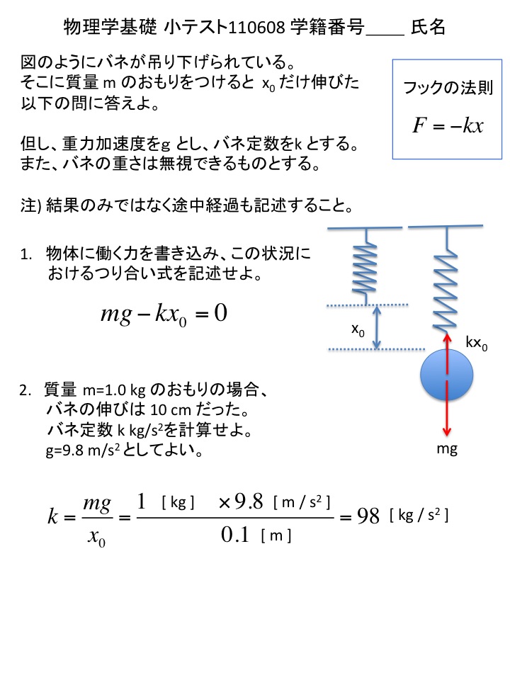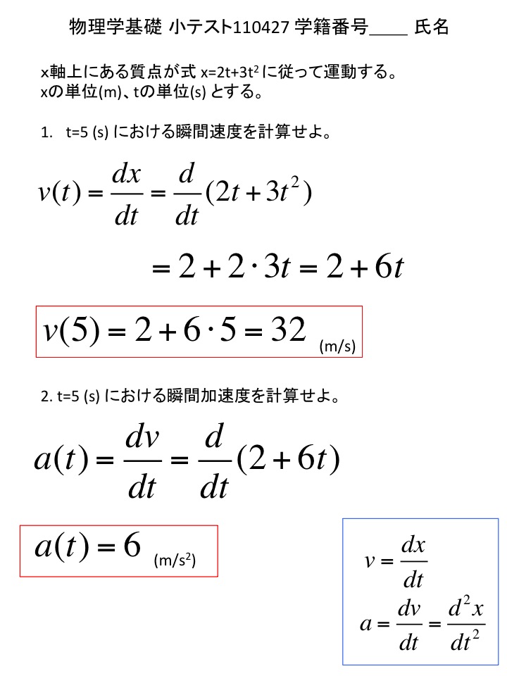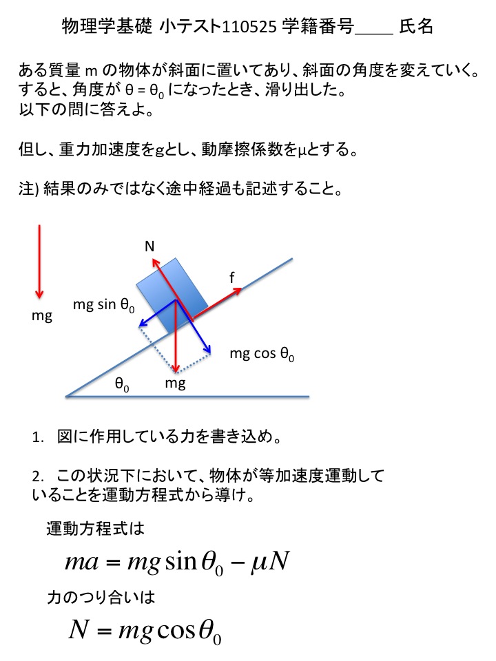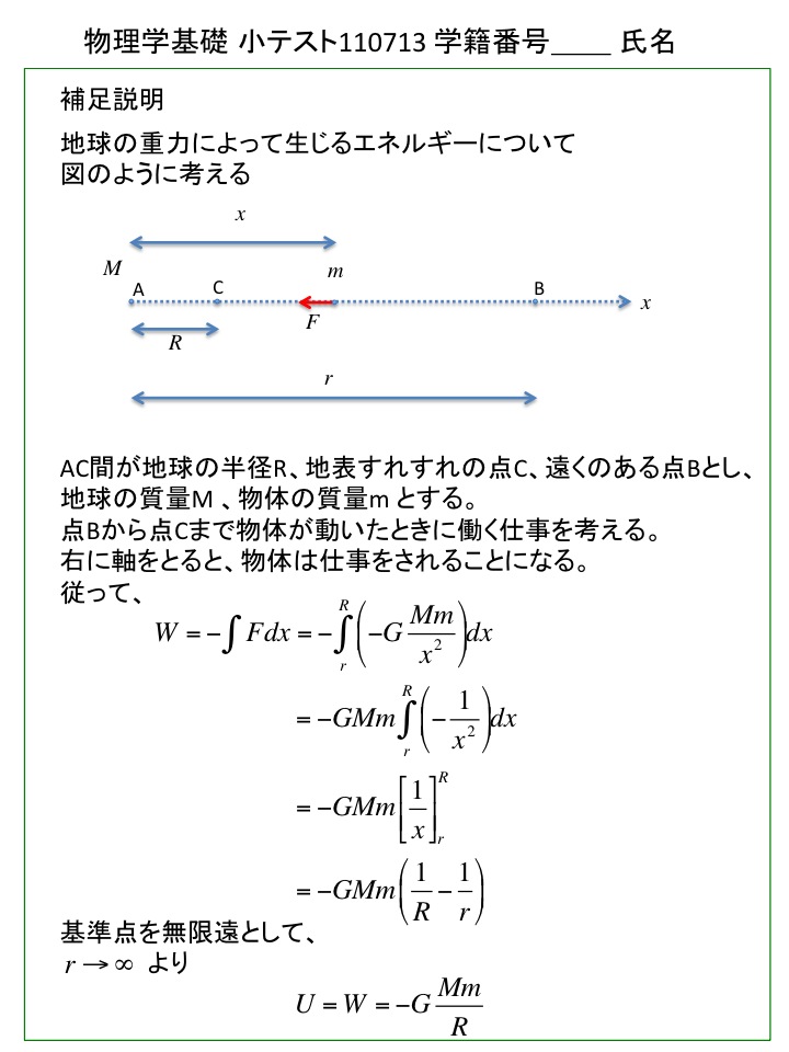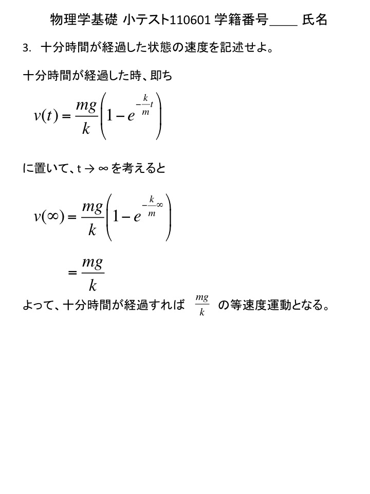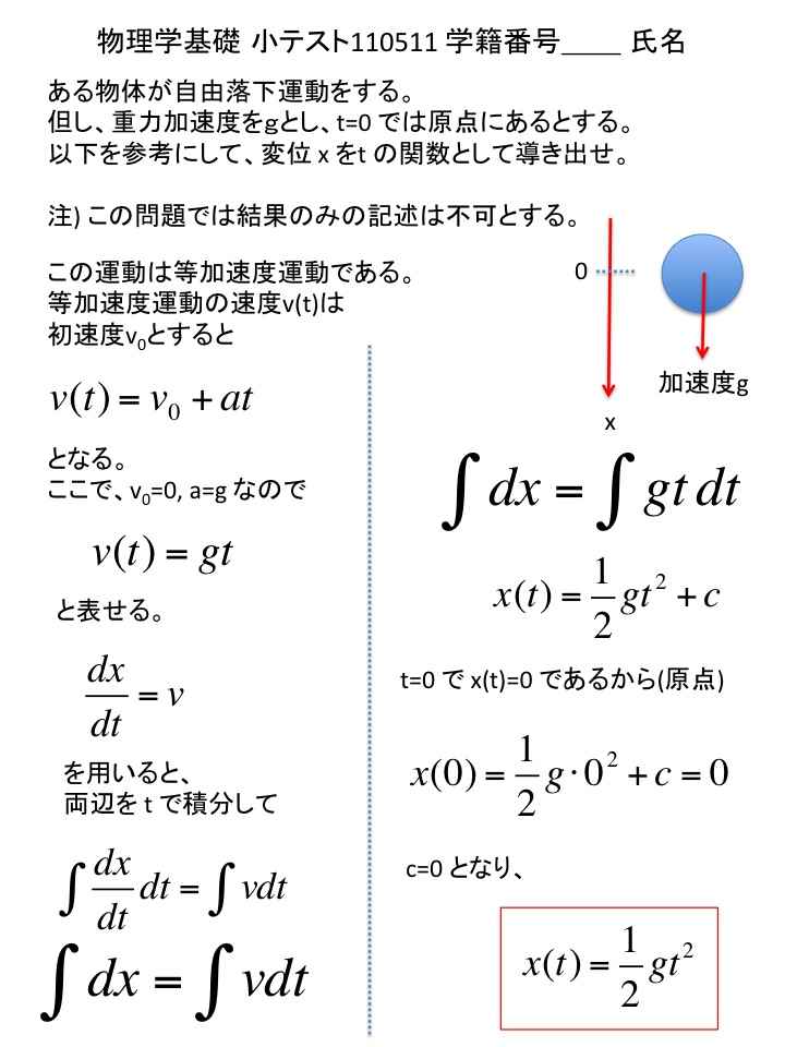 2011年度 物理学基礎 小テスト解答例(仮)