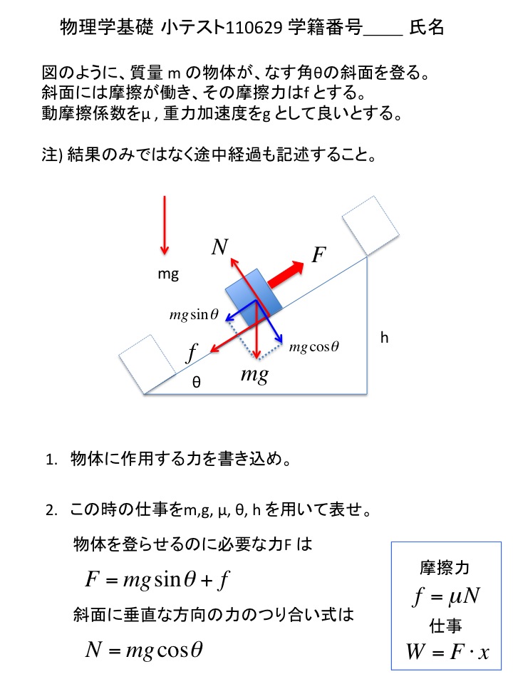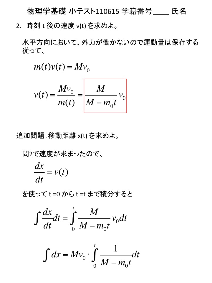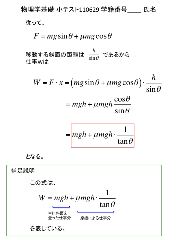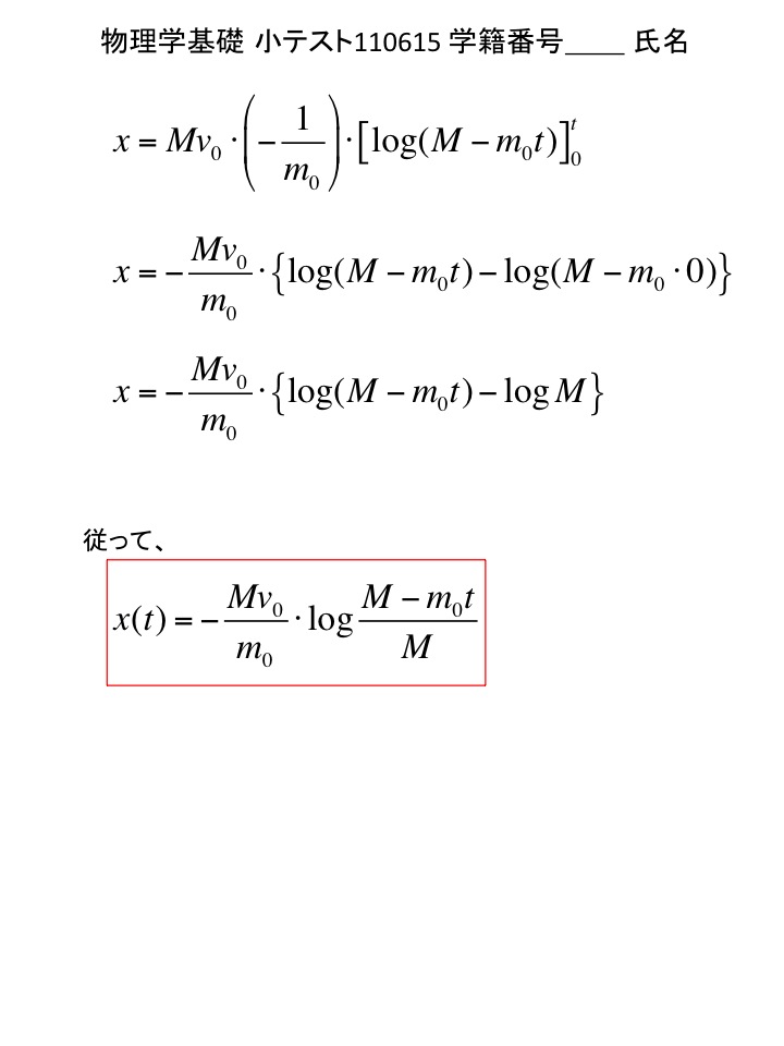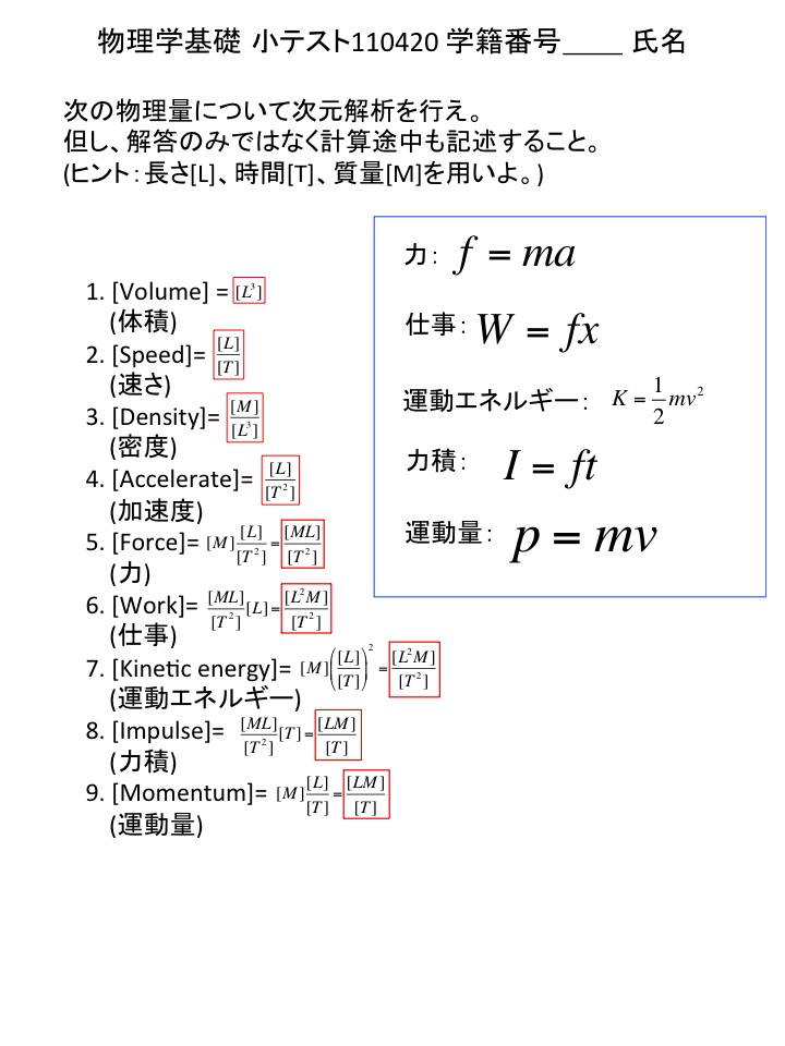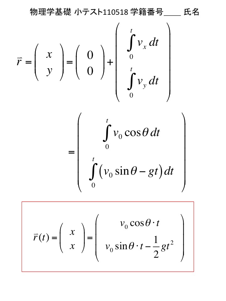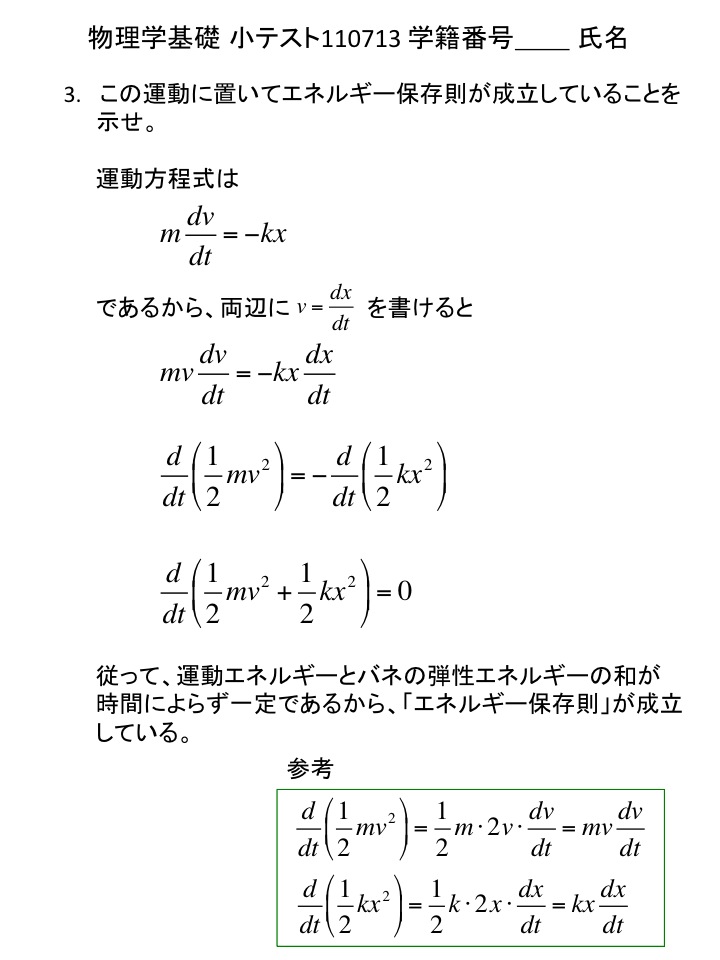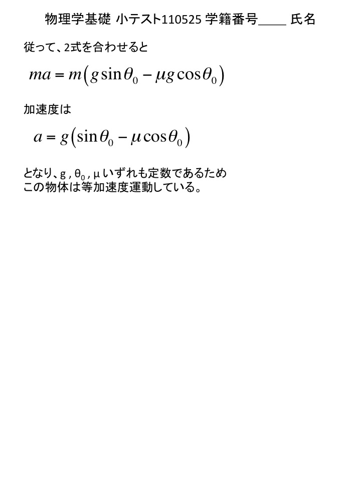 2011年度 物理学基礎 小テスト解答例(仮)